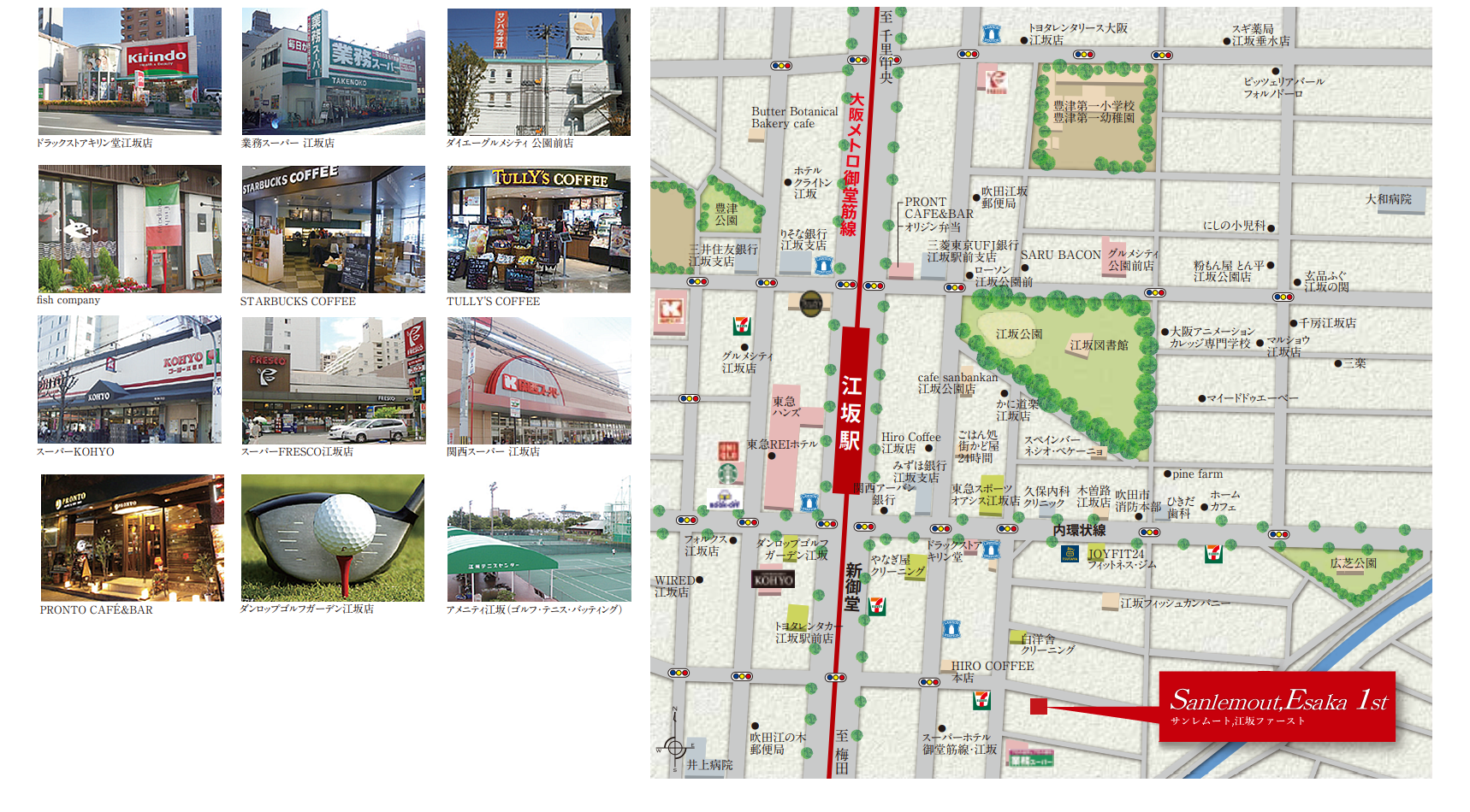 アクセス & ロケーション Access & Location アクセス ロケーション サンレムート, 江坂1st アクセス & ロケーション 設備仕様 フロアプラン 間取りタイプ表 Category 管理物件 北摂 人気の江坂特集 Others Pick Up 新築物件 Gate Court シリーズ 人気の江坂特集 管理物件 管理物件